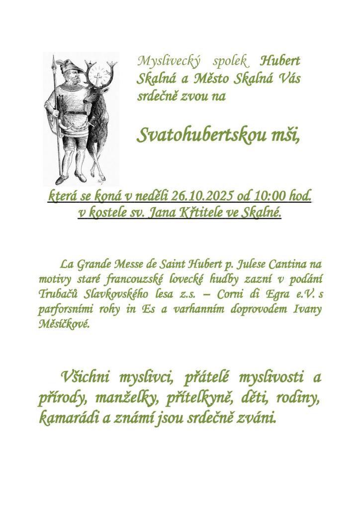 Svatohubertská mše se uskuteční 26. října 2025 od 10:00 v kostele sv. Jana Křtitele. Tato mše je věnována svatému Hubertovi, patronu myslivců, a představuje významnou událost pro všechny, kdo se zajímají o myslivecké tradice a kulturu. Přijďte a zažijte duchovní obohacení v krásném prostředí kostela.