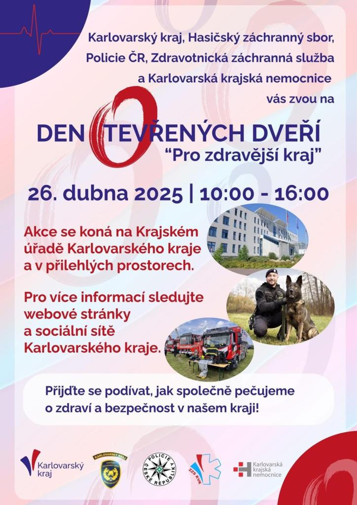 Celá akce proběhne na Krajském úřadě Karlovarského kraje a v přilehlých prostorách. Návštěvníky čeká bohatý program, ukázky práce integrovaného záchranného systému, interaktivní prezentace a možnost nahlédnout do zákulisí fungování institucí, které se starají o zdraví a bezpečnost občanů kraje.